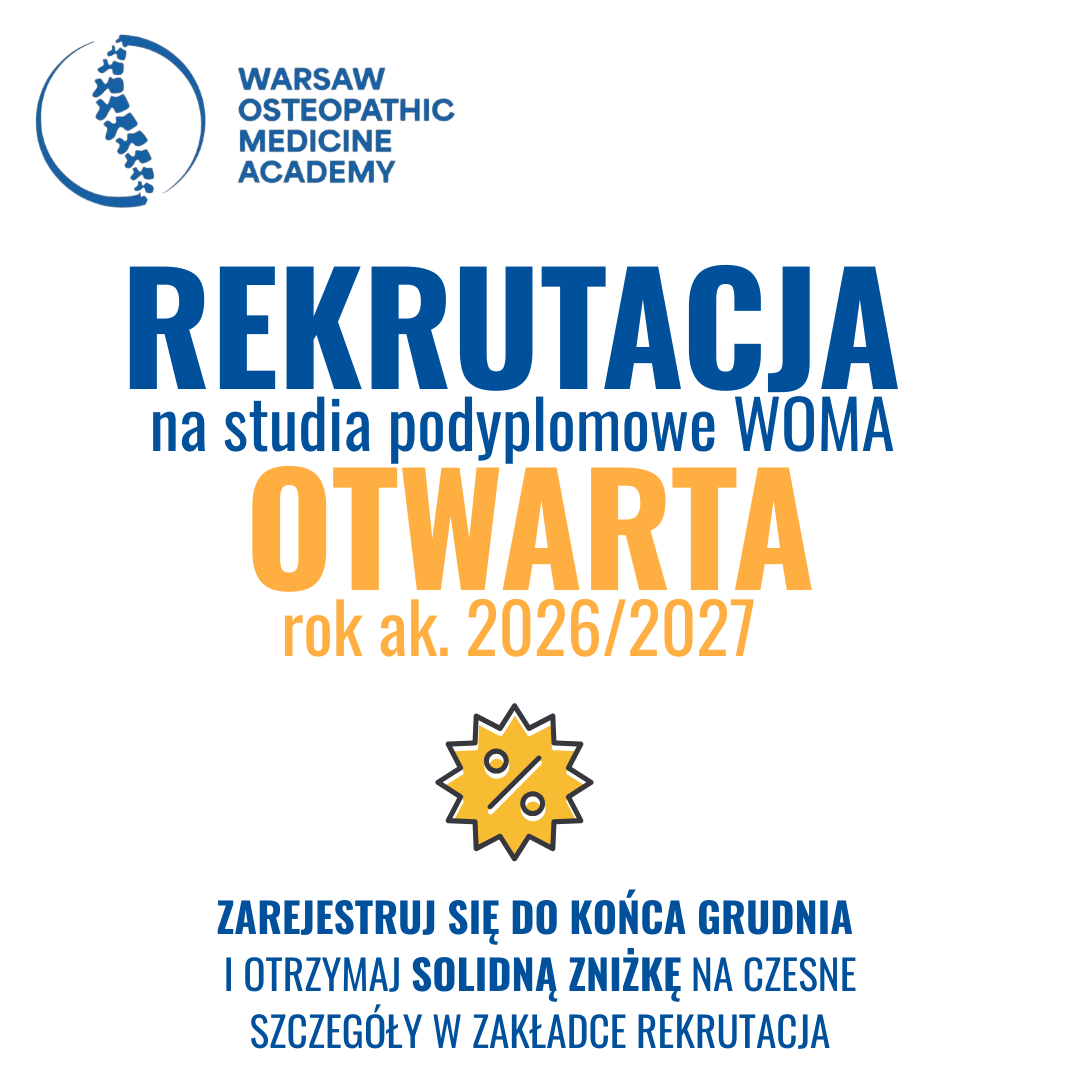 Warsaw Osteopathic Medicine Akademy prowadzi 4-letnie studia podyplomowe w formie niestacjonarnej. Każdy rok studiów zamyka się w 9 zjazdach oraz 1 sesji egzaminacyjnej. Podczas każdego zjazdu realizujemy 13 bloków zajęć po 110 minut (23,8 godzin akademickich). Dzięki temu terapeuci (fizjoterapeuci i absolwenci medycyny) zyskują szeroką